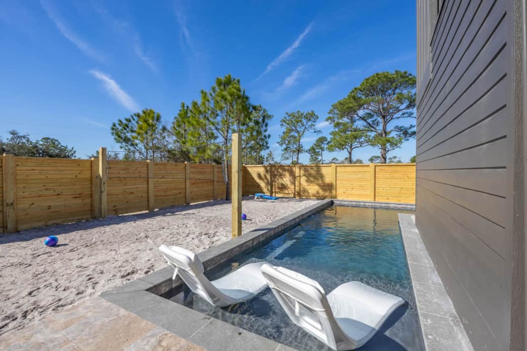 Our newest addition to our lineup is our new beach home! This home has a private sand trail down to the beach! Some of the amenities include Heated and cooled pool, Outdoor movie projector, Roof Top Deck and sand volleyball! This house has 5 sleeping areas and can sleep up to 11 people.
